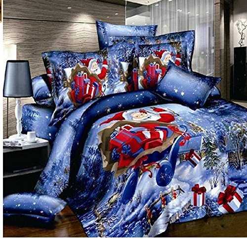 QUEEN SIZE 3D CARTOON BEDDING SETS HOME TEXTILE SANTA CLAUS SLEIGH BLUE STORM 4PCS