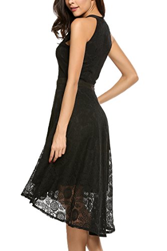 Style:Slimming bodice,fitted patchwork waist falls to a flirty asymmetric skirts with fully lining;Hollow-out floral lace accents the characteristic of this dress,super fashion and elegant.