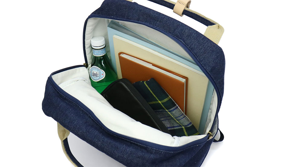 The main room is a sense of size that A4 size fits comfortably. In addition to wallets and pouches, A4 size files also fit, making items easy to use for school. Casual looks and both hands rucksacks are also recommended for active scenes.