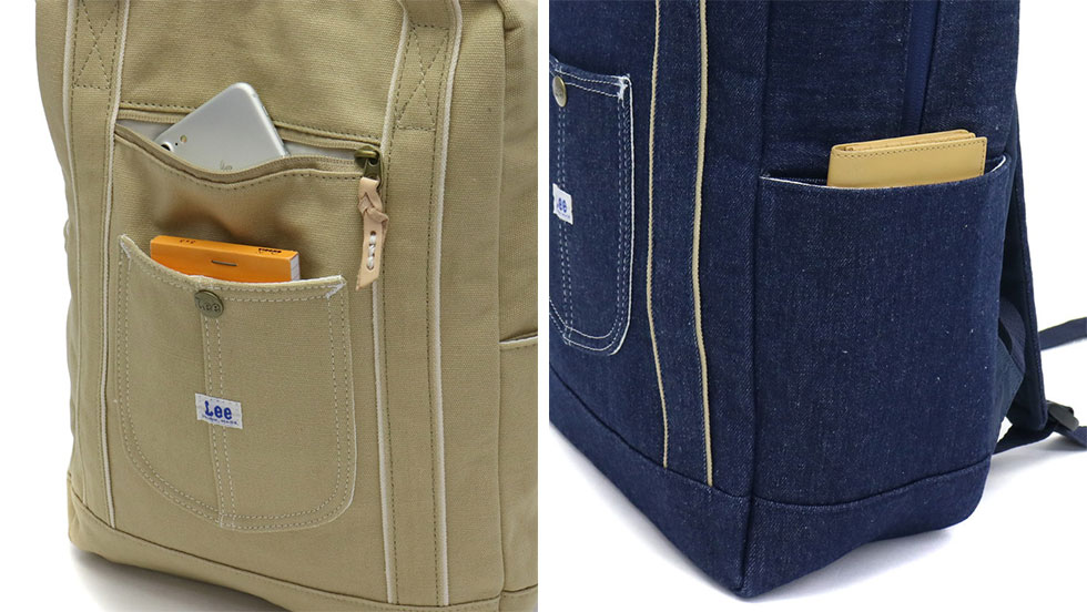 The pocket which was decorated on the front part of the main body was an impressive design with a snap with the brand name of "Lee" stamped on the design that makes me think back pocket of the jeans. It is a finish that made the playful feel unique to "Lee". In addition, it is a tough texture unique to jeans brands, ease of use for daily use is also a point.