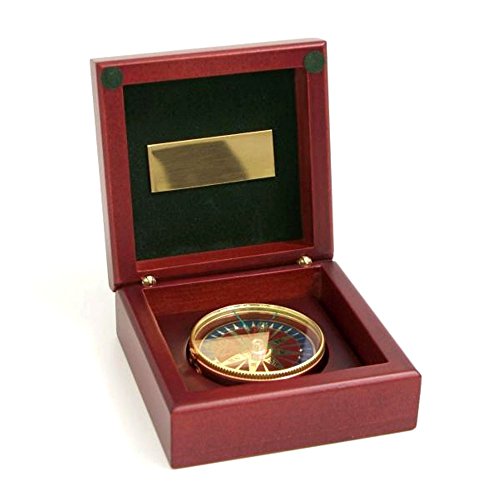 Studio : Bey-Berk Publisher : Bey-Berk Product Description The compass in wood box measures 1.75"H x 3.5"W x 3.5"D. This item features a brass compass in a polished mahogany wood box. This beautiful desktop compass is an ideal addition to any executives desk or any nautical collection. The compass can be removed from the display box if so desired. A brass plate also comes with this item. The plate can be engraved easily at your nearest jewelry or trophy shop and then placed on any part of the display box you see fit. It makes a great gift and impressive decoration. 0