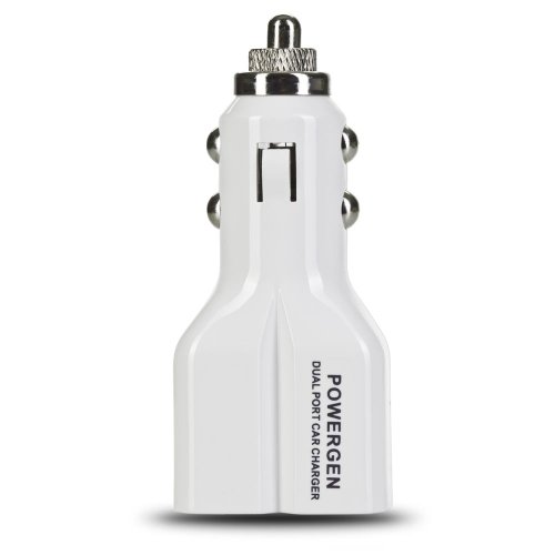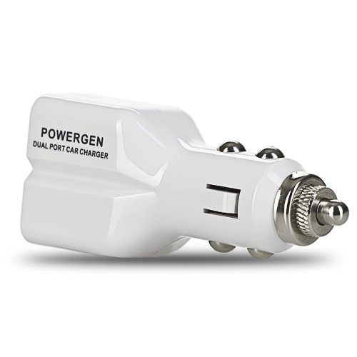 PowerGen White Dual USB 4.2A (20W) Car charger Designed for Apple and Android Devices