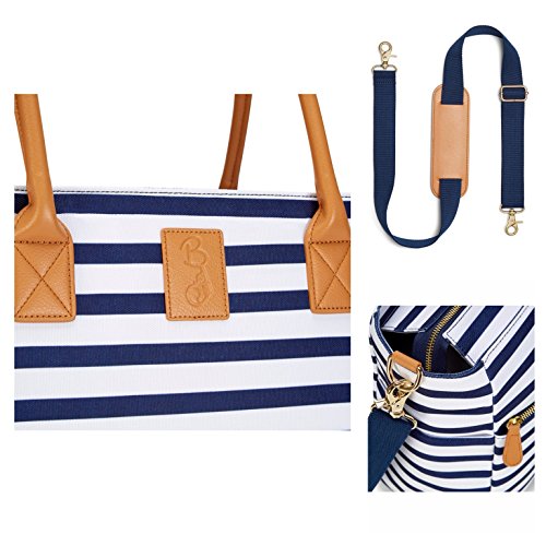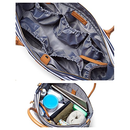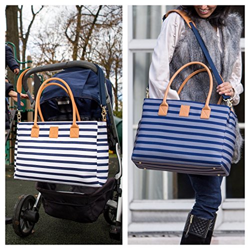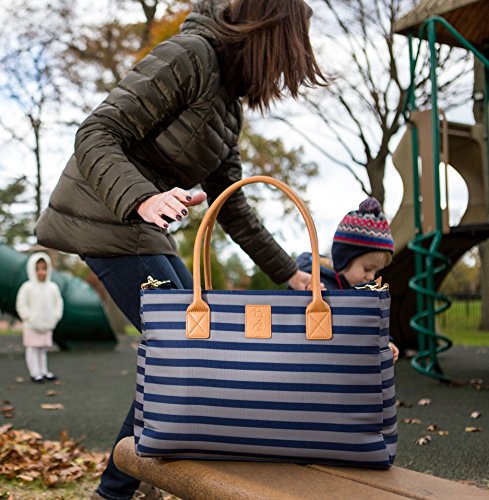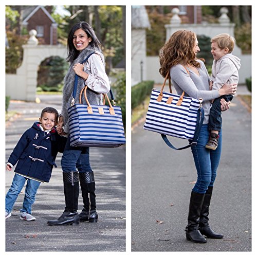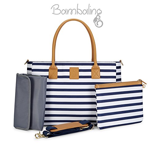 LUXURY AND QUALITY MEET FUNCTIONALITY. Bambalino created this designer tote for modern parents seeking to combine classic style with the everyday practical needs of a diaper bag that stands the test of time and your loveable, messy children :) But make no mistake, heads will turn when you walk by with your elegant European-inspired handbag...that happens to also be a multi-purpose, easy-to-clean large diaper tote bag, or the perfect family tote! HIGH-END CRAFTSMANSHIP AND DETAILS. We left no design decisions to chance. The Espacio is made with elite hardware ensuring not only a sleek look, but durability--from a water-resistant outer canvas shell to genuine leather handles to reliably strong zippers. YOUR CONVENIENCE FIRST! At Bambalino, our goal is to make the inglorious job of parenting convenient yet classy. The Espacio's luxury canvas fabric is easy to spot clean with water (and mild soap, if required). The bag can be worn in multiple ways and used for various purposes. We've also included a: - Chic matching accessory bag to store your essentials, messy bibs, or as a standalone clutch to carry diapers and wipes on-the-go