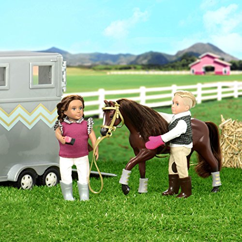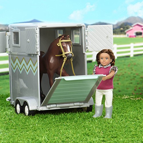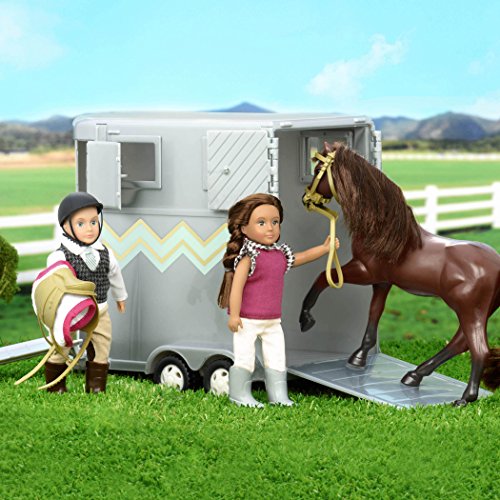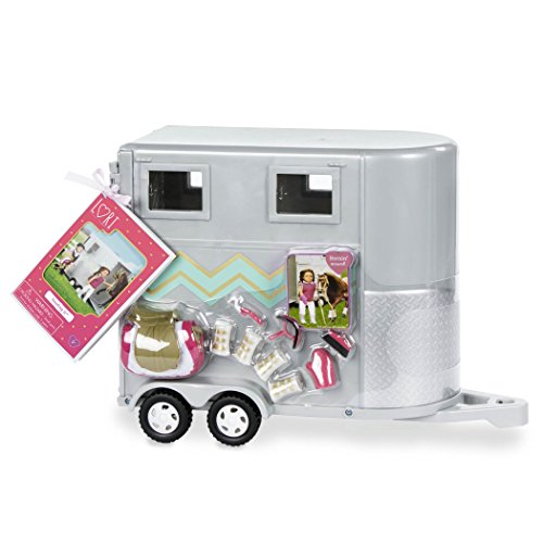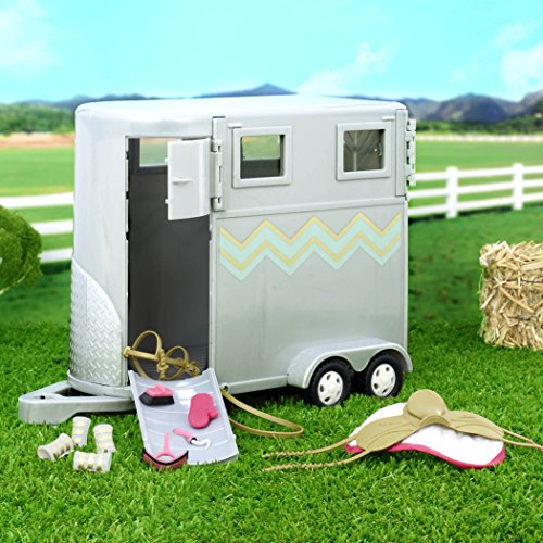- The Hoofing It horse trailer set comes as one horse trailer, one saddle, one bridle, one hook, one brush, one scraper, one glove, four horse boots, and one horse pad.