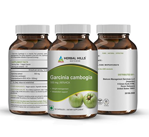 -. Feature : Herbal Hills Garcinia cambogia 120 vegie capsules of 500 mg / Garcinia cambogia extract with 60% HCA / We adhere to Non-GMO standards / Weight Management capsule / Metabolic support