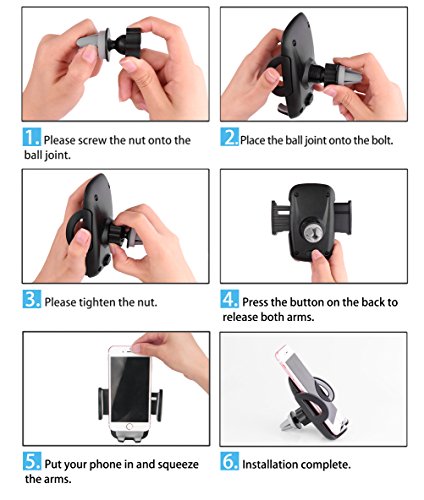 WHY CAR OWNERS CHOOSE OUR NEW PHONE HOLDER?☞[Super Security] A great product for car that keeps your phone secure has a very small footprint for a cell phone holder folks very convenient and sturdy while driving.☞[Great Performance] The new car phone air vent mount does the job and does it well grabs on and holds my phone tight real tight folks.☞[Long Durability] This well made air vent mounted cell phone or gps mount is really nicely designed, ABS+PVC materials ensures the light weight and long durability.