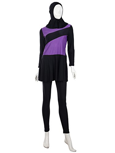 -. Feature : Suit swimsuit 3 pieces: hijab, coat, pants. Made of 80% nylon, 20% Lycra / Soft texture, anti-bacteria and excellent abrasion / Breathable, quick drying, light weight and soft on skin / Note: with chest pad without steel care, UPF 50+, protect you from sun burn / Please choose your size carefully. Please ignore the size tag and select size according to our measurements,based on weight and height(size chart below in Product Description,make sure you check it)
