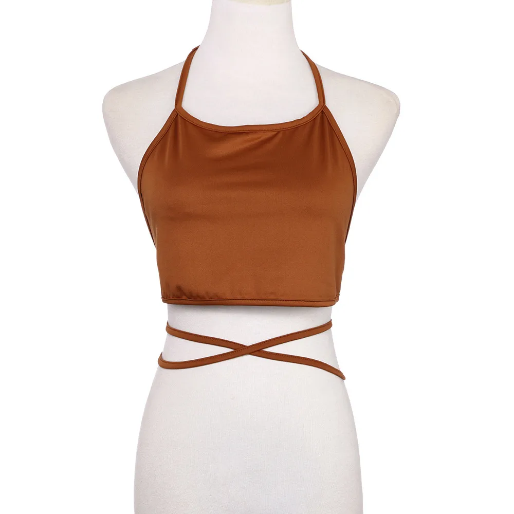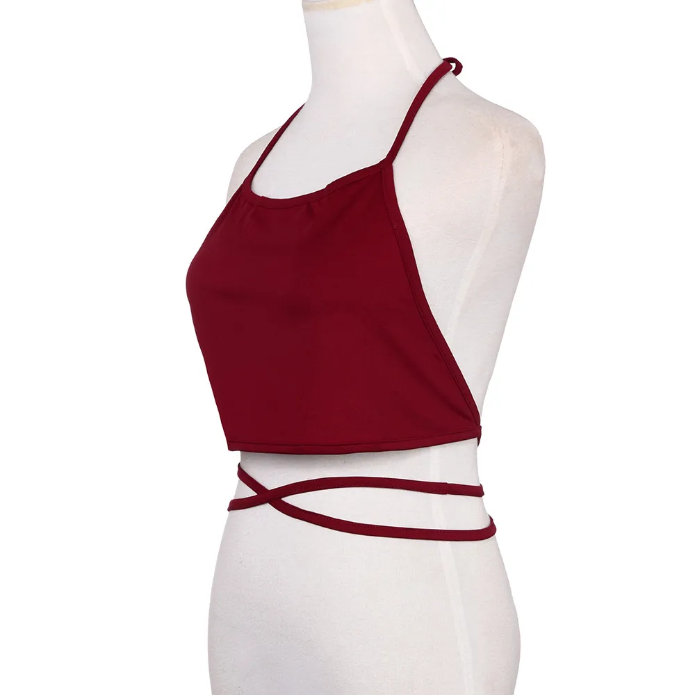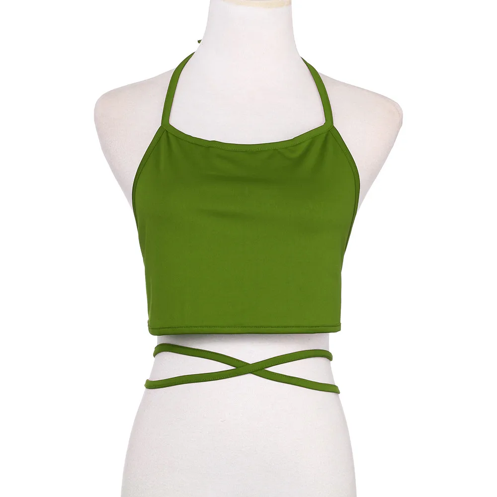 crop top feminino women cropped tank :Sleeveless Backless Vest Halter Tank Tops Blouse
