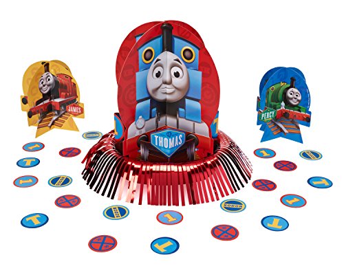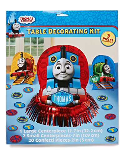 Each kit features a large Thomas the Tank Engine centerpiece, two small centerpieces with James the Red Engine and Percy the Small Engine the Small Engine and 20 confetti pieces
