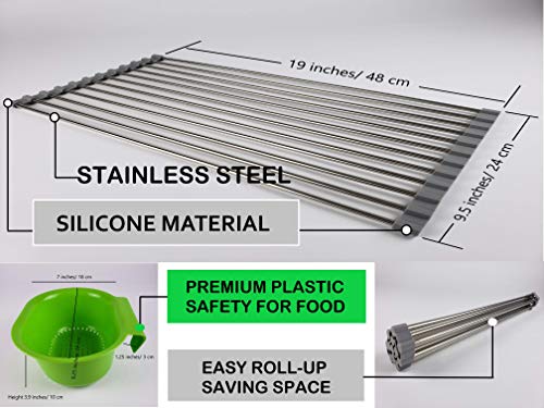 Material:Stainless Steel/Silicon Grey Dry Kitchen Rack, and Plastic drain basket