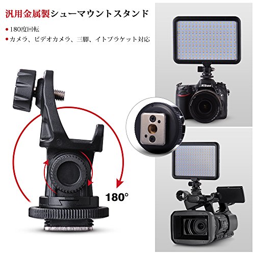 【優れた互換性】ホットシューと1/4インチの穴のデザインにより、さまざまなデバイスを簡単に取り付けることができます。DV、カメラ、三脚、ライトブラケットに簡単に取り付けることができ、LEDパネルの位置制限を破ってさまざまな照明効果を実現します。