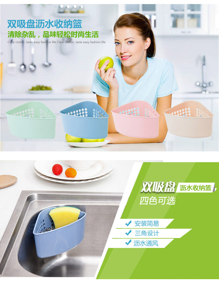 Triangle, space-saving, can be placed on the edge of the pool, the bathroom corner, put steel brush brush toiletries, the rest of the pool can be left to wash the vegetables leaves debris