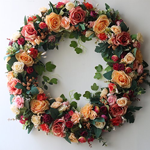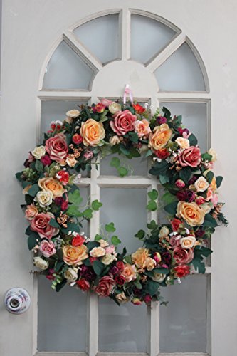 Diameter: 24 inch Innner Diameter:13inch Every flower head is carefully hand-crafted. Each wreath shows their unique beauty