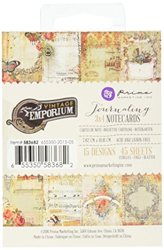 Prima Marketing 583682 Double-Sided Vintage Emporium Journaling Cards (45 Pack), 3" by 4", Multicolor