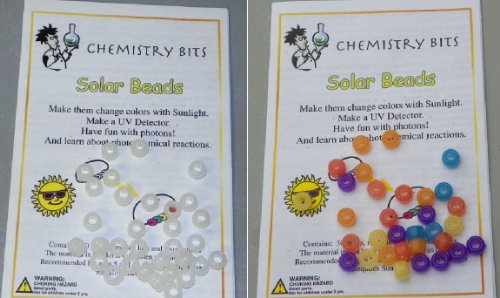 -. Binding : Toy -. Brand : Universe of Science -. Feature : Great Solar Powered Project for Youngsters / Study Ultra violet Light / Detect Exposure to Sun light / Fun for Ages 5 and up -. Label : Universe of Science Inc -. Manufacturer : Universe of Science Inc -. ProductGroup : Toy -. ProductTypeName : TOYS_AND_GAMES -. Publisher : Universe of Science Inc -. Studio : Universe of Science Inc -. Title : Solar Beads UV Experiment Chemistry Bits Kit