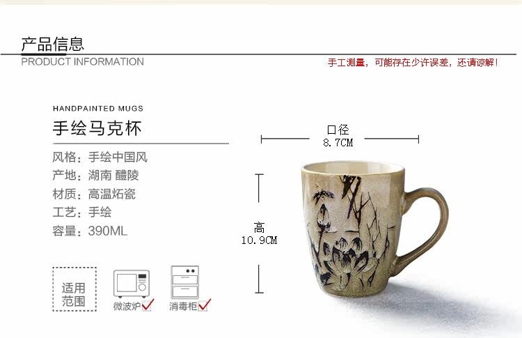 手绘复古中式书房茶水杯个性大号咖啡马克杯陶瓷杯子创意牛奶杯
