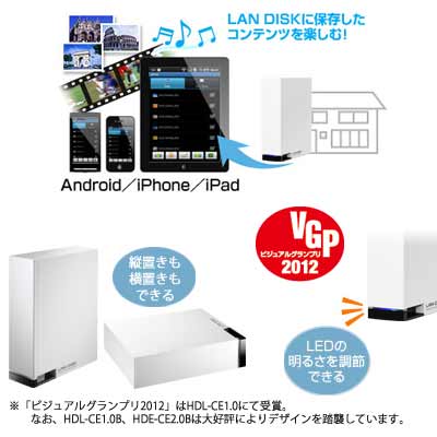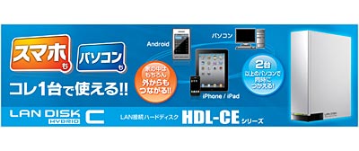 パソコンはもちろん、スマートフォンからもつながるLAN接続ハードディスク