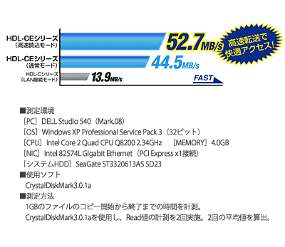 ???LAN DISK内のファイルシステムを最適化することで高速なアクセスを実現する高速読込モードを搭載。