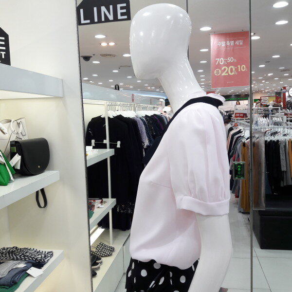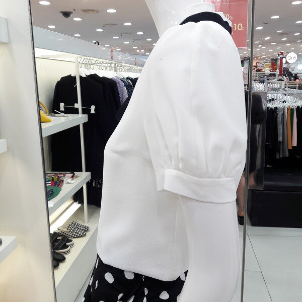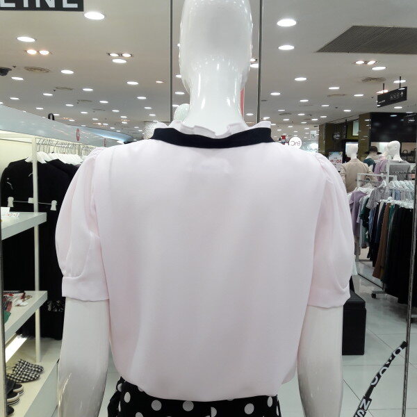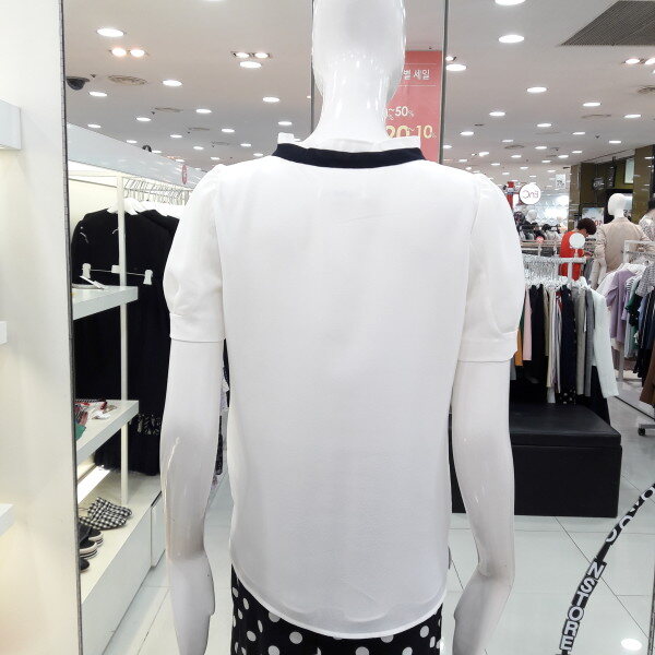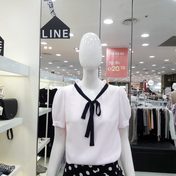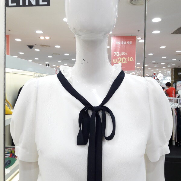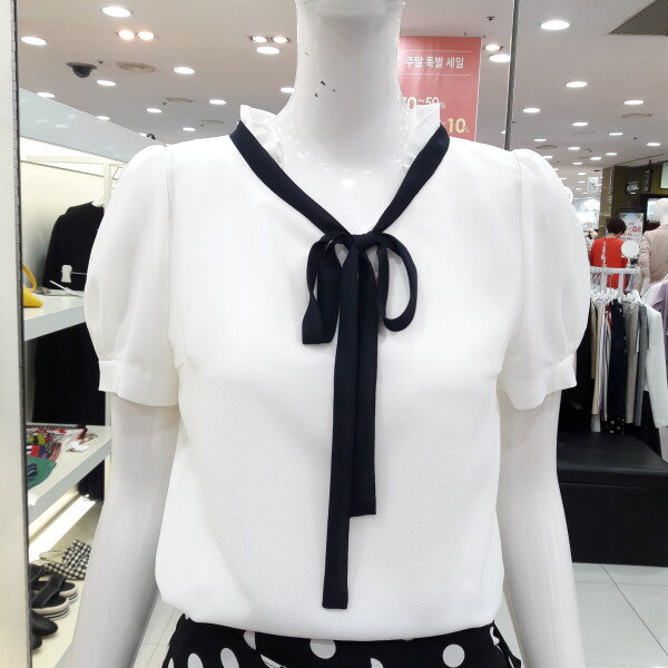 18년 신상 가격인하된 러블리한 블라우스입니다 깔끔한 디자인에 넥선 리본이 여성스럽고 하늘거리는 쉬폰소재로 사랑스러운 분위기입니다 슬랙스 스커트에 연출해보세요