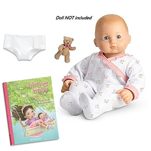 -. Feature : American Girl 3 Piece Set for Bitty Baby! / Includes Pink and White Cozy Cuddly Sleeper in Pink & White and a white diaper / Also included Bitty Bear and "Bitty Baby & Me" Hardcover Book! / Doll Not Included