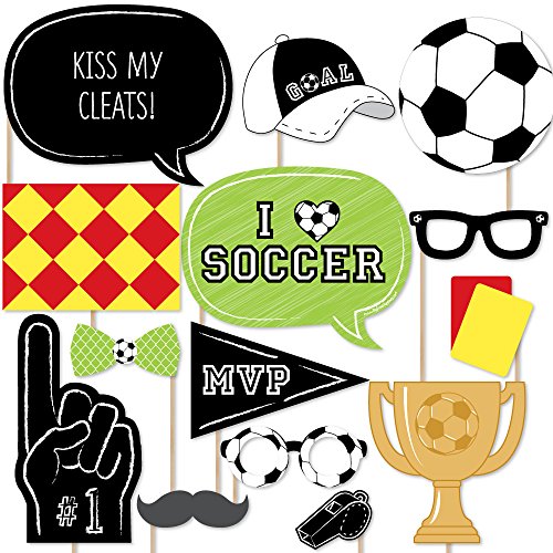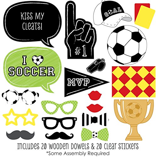 20-Piece Baby Shower or Birthday Party Photo Booth Props Kit INCLUDES 20 Soccer photo booth props, 20 wooden dowel sticks and adhesives for assembly. EASY ASSEMBLY: Simply attach the printed DIY photo booth props to the wooden dowels with included adhesive and reinforcing stickers.
