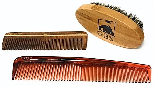 GBS 3 Piece Grooming Set - Includes Oval Bamboo Beard Brush, Tortoise 7" Dressing Comb and Wooden Pocket Comb