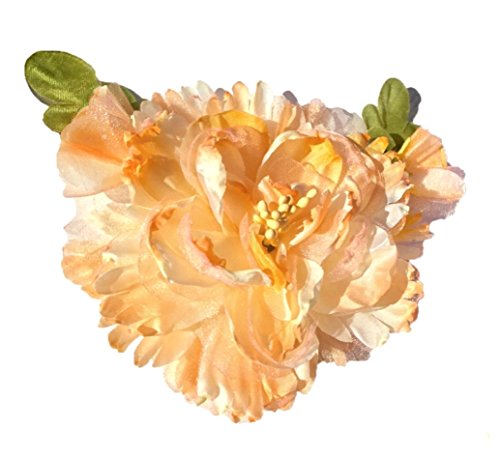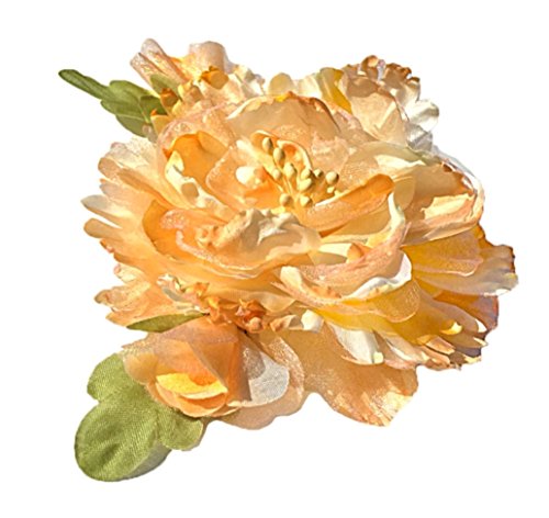 Cuteque International Organza and Silk Peony with 2 Rosebuds Attached (Pack of 3), 4", Gold/Apricot