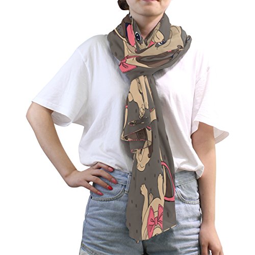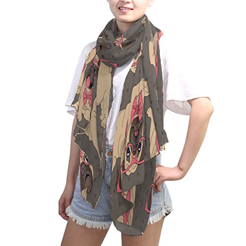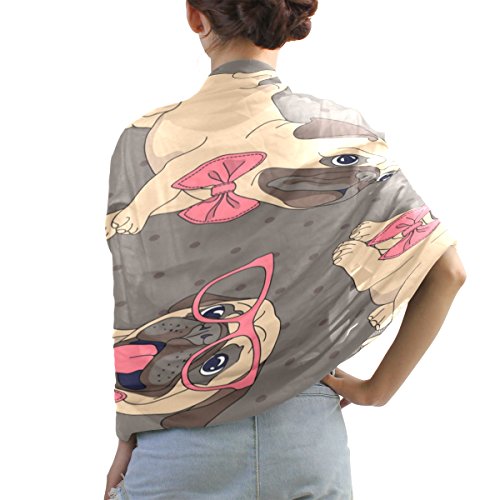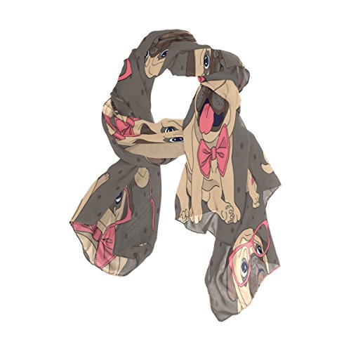 (ALAZA)/Accessories/Cold Weather Accessories/DIRECT FROM USA/ALAZA Hipster Pug Dog Polka Dot Chiffon Silk Long Scarf Shawl Wrap