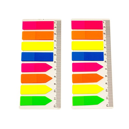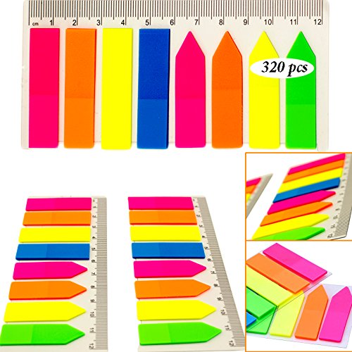 Adorox (320 Pieces, Ruler Included) Neon Page Marker Index Colored Tab Flags Office Memo Holder Florescent Sticky Note