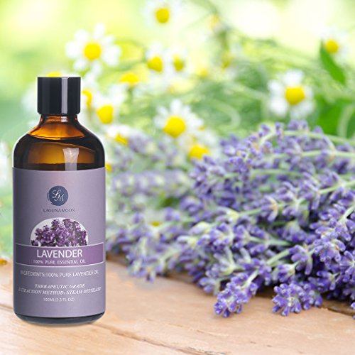 Lagunamoon Lavender Essential Oil,Premium Therapeutic Grade Aromatherapy Oils,Pure Lavender Oil for Sleep,Relaxing,Bathing,Soap Making