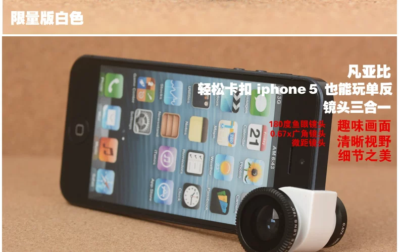 To keep up with the pace of apples, strong launch high-end version of the 3-in-1 set iPhone5 phone plug-effects shots, this product is high quality optical lenses lenses, clear height and has a very significant effect of optical lenses with a three-layer film (and we wear blue film glasses green film, like), in order to prevent distortion and other effects after decades of optical photographic effects, it is particularly the use of high density and high hardness plastic materials do frame. We believe that this product will be the majority of gifts to the influx of people and the majority of the most beloved baby!