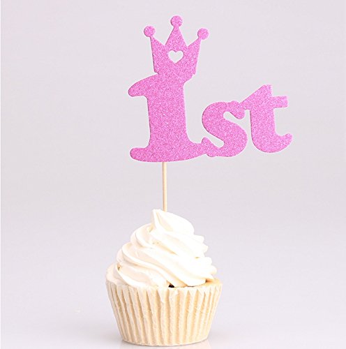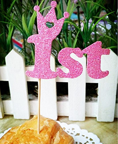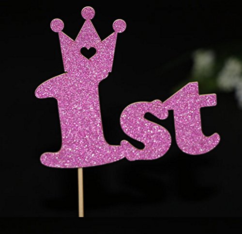 12 PCS Sweet Heart First Birthday PINK Cake Topper -"1st"- Decoration For Baby Girl