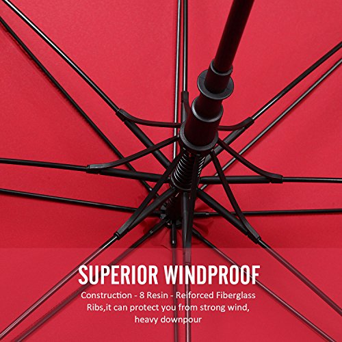 - Fiberglass shaft and ribs, designed and tested to resists strong winds up to 55 miles per hour