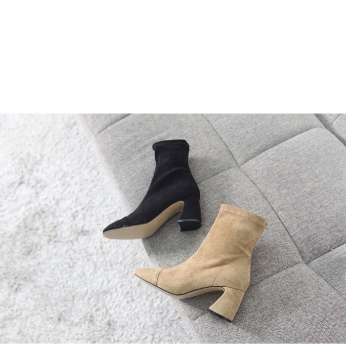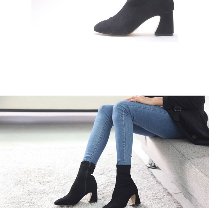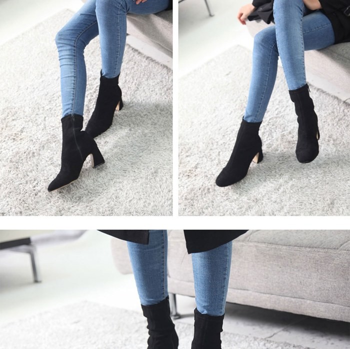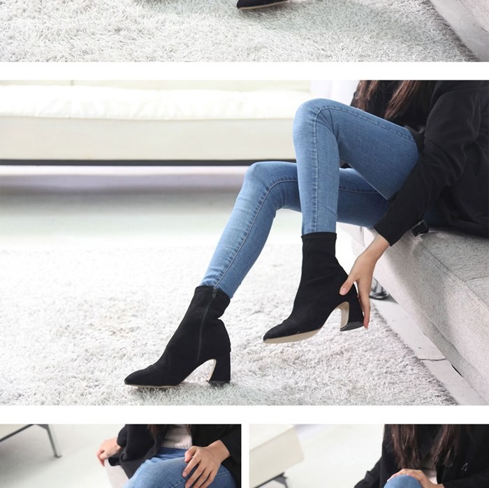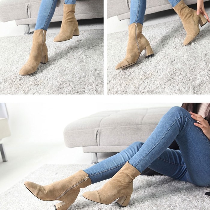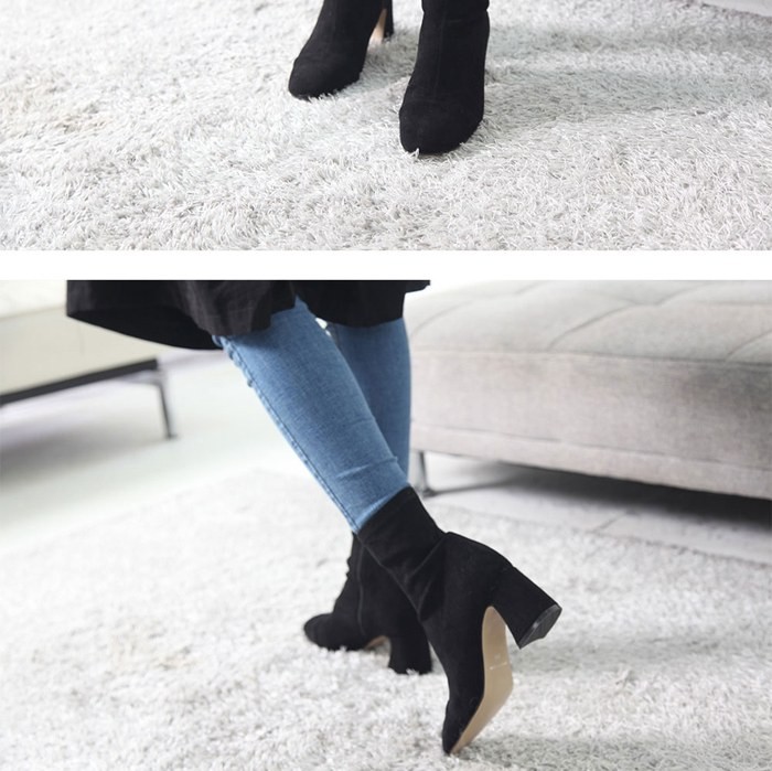 商品名:ストレッチブーツ レディース チャンキーヒール ポインテッドトゥ スエード調 2017 秋 冬 ファッション 靴 婦人靴