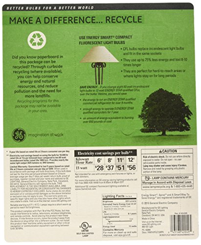 GE 13-Watt Energy Smart Fluorescent Light Bulbs, 8 Pack, 60 Watt Replacement