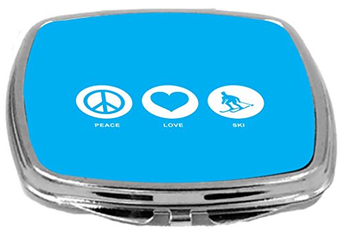 Rikki Knight Peace Love Ski Design Compact Mirror, Sky Blue, 2 Ounce