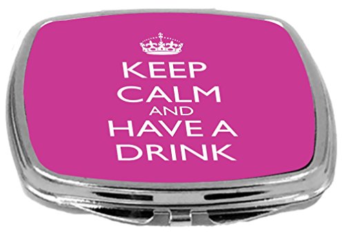 Rikki Knight Compact Mirror, Keep Calm and Have a Drink, Pink Rose