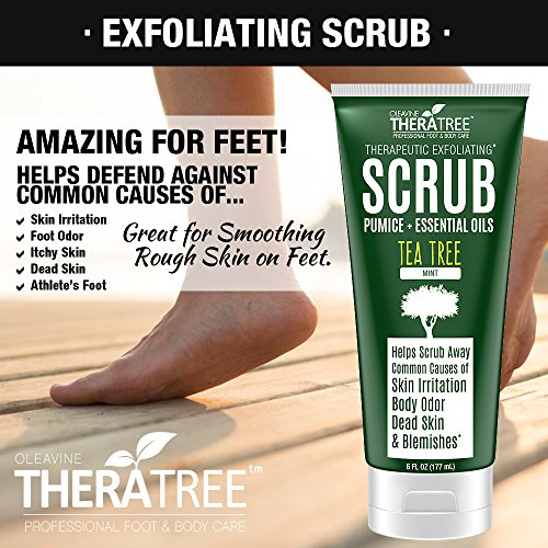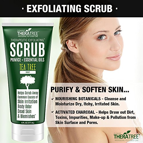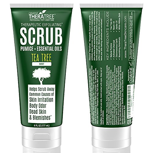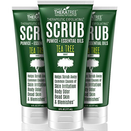 Tea Tree Oil Exfoliating Scrub with Activated Charcoal, Neem Oil & Natural Pumice by Oleavine TheraTree
