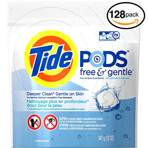 -. Title : (PACK OF 128 PODS) Tide FREE & GENTLE Laundry Detergent PODS. High Efficiency & Non-High Efficiency. Detergent + Stain Remove + Brightener ALL IN ONE! All Temperatures. (128 Pods in Each Package)