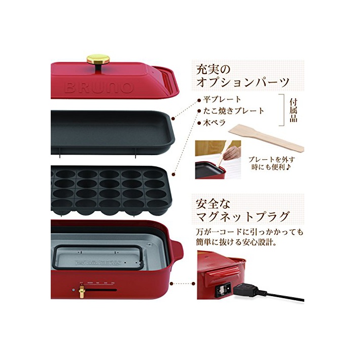 Bruno BRUNO 콤팩트 핫 플레이트 과세트 (레드)