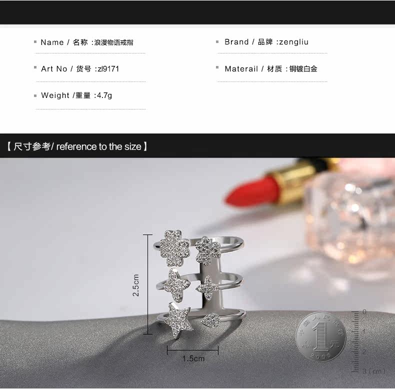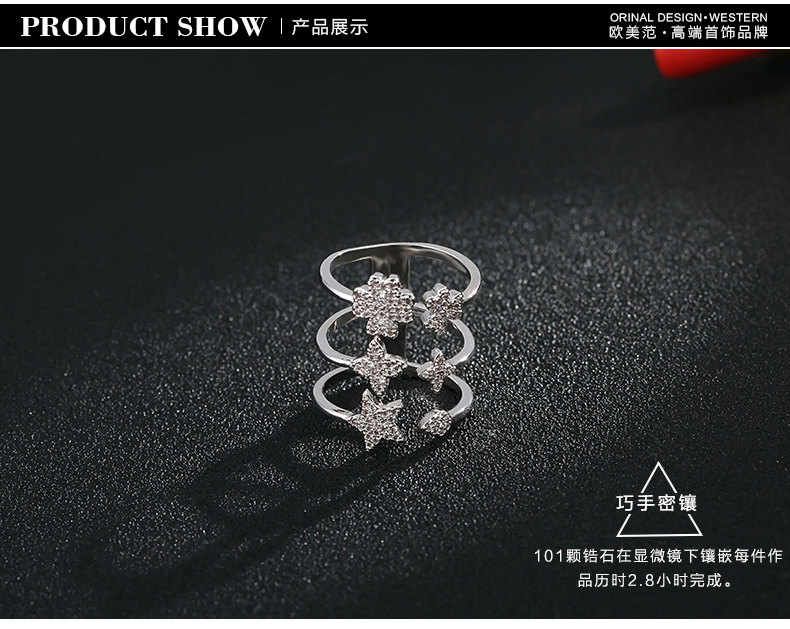 开口戒指 女时尚三环食指套戒子装饰尾戒多环可调节饰品闺蜜礼物?