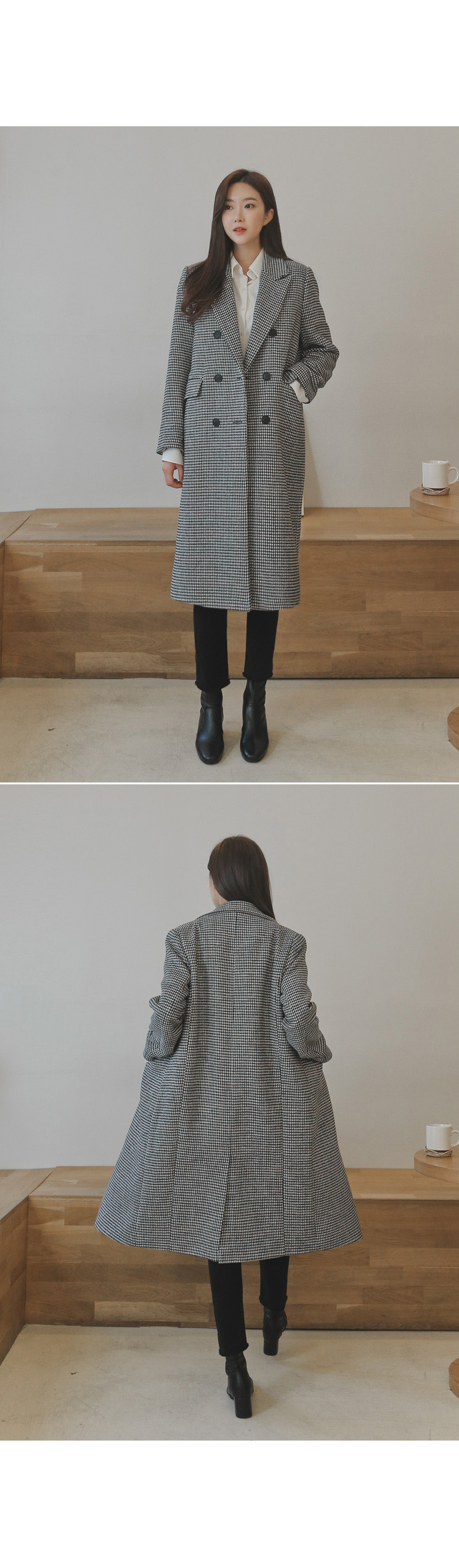 더블 버튼의 테일러드 코트로 시크하면서