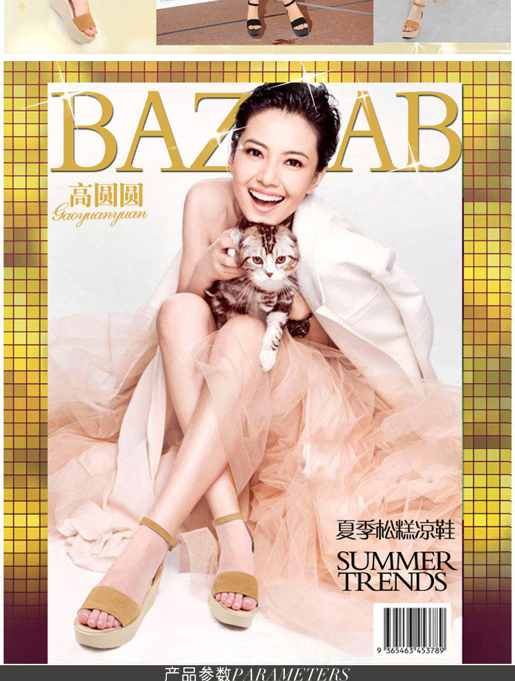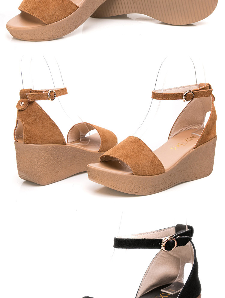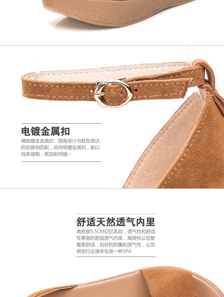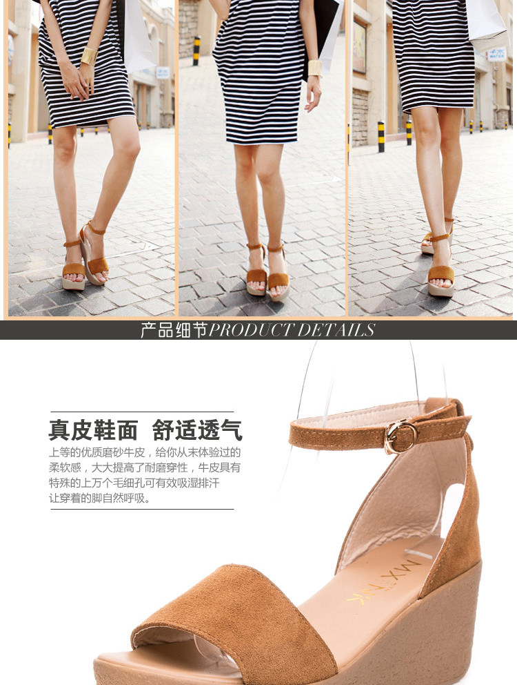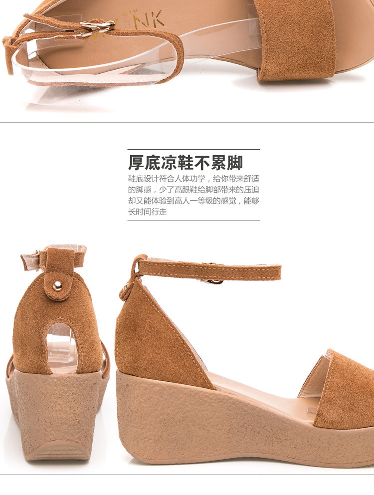 夏黑色磨砂真皮中跟韩版松糕厚底软底女式坡跟扣带大码凉鞋女