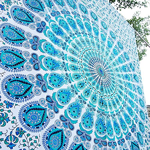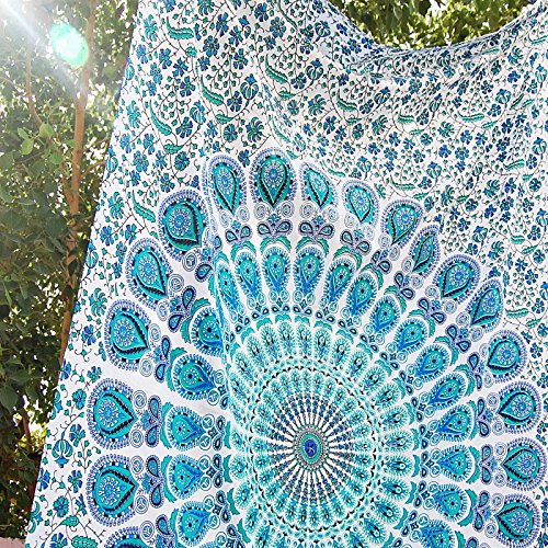 Studio : Montreal Tapassier Publisher : Montreal Tapassier Binding : Kitchen Product Description * Beautiful Indian Screen Printed Cotton Mandala printed Tapestry or Bed Cover in Twin size. * The fabric has been stone washed and on top of the Mandala Design was screen printed in sharp blue and shades of green color. * Front side has white Base on mandala print have been crafted. * This gorgeous piece of art can be used as Bedspread, Bed Cover, Table Cloth, Curtain and of course as a Tapestry or a Wall Hanging. * Add an ethnic feel to your room with this cotton handmade wall hanging. Go for a dramatic makeover of your wall and this tapestry would become a conversational piece of art. A must have in any season for all ethnic savvy ones. This is a rare beauty not to be missed, a genuine collector's item the result of masterly workmanship. * This Tapestries are completely screen printed in traditional Indian method and takes around a week to complete. 100% Cotton - This tapestries are printed, not quilted or woven. They are hippie Indian tapestries. Thin as sheet. Good, tight power loom construction. Hemmed edges.Each tapestry has its unique imperfections. In some cases what printers would call registration errors are intentionally included on the screen print to simulate hand woodblock prints. Note: Actual Images of items in indirect sunlight are shown above. We follow WYSIWYG "What you see is what you get". The original color of items which you buy may differ minutely from the images due to camera capture sensitivity, lighting even your system screens, so there may be a minor possibility in change of brightness contrast. Depending on the size of products there may be dimension variation because products are made by hand and also variation in weight due to moisture, dryness, gravity and different measuring machines. 0