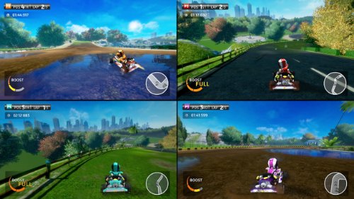 Play six of the most popular sports: soccer, football, baseball, tennis, golf, and karting