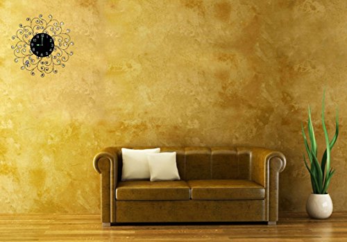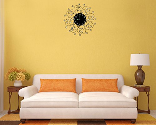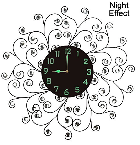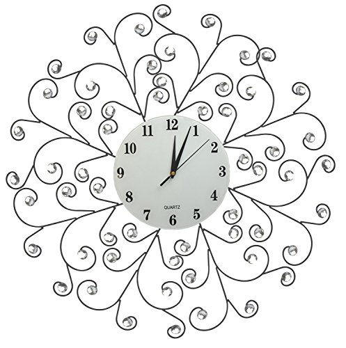 -. Feature : Decorative metal wall clock diameter 24" and glass dial 9.50 / Silent Non-ticking, high quality quartz battery operated movement. Requires one AA battery (not included). / Aprox weight 5 lbs, Metal frame of the clock with accents goes well with most room decors. Please beware of cheap plastic reproductions. / Design for this decorative metal wall clock is inspired from creeper plant. / Perfect for Housewarming gift, holiday gift etc.
