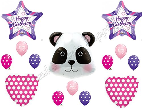 -. Feature : A 14-piece Panda Pink and Purple happy birthday balloon decorating kit! / Such cute balloons to help you decorate your party! You will receive with this kit: / (1) 28" XL Panda Head Shape Mylar balloon. / (2) 18" Panda with Dots Round Mylar Balloons (not stars as shown), and (2) 17" Hot Pink Polka Dot Heart Shape Mylar Balloons. / (9) 11" Coordinating Latex Balloons....3 Light Pink Happy Birthday, 3 Purple Polka Dot and 3 Berry Pink Polka Dot. All balloons are new and shipped uninflated. Just add helium!