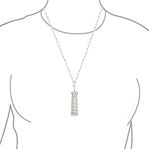 This femininely art deco crown necklace has timeless white freshwater cultured pearls cascading 0.75in away from the 27in chain. Rhodium plated and unique, you'll love this tassel necklace.