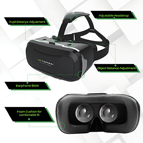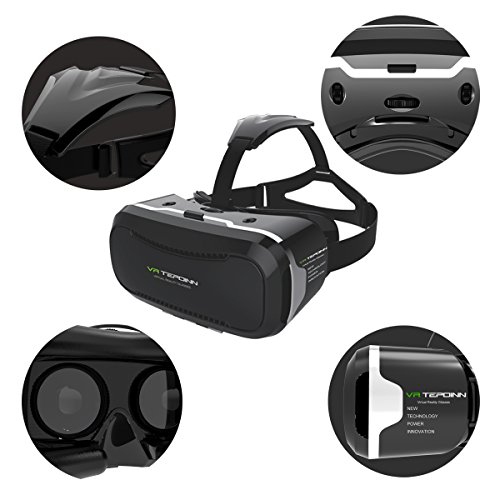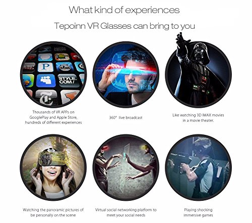 -. Binding : Wireless Phone Accessory -. Brand : Tepoinn -. Feature : Smartphone turned into virtual reality viewer. Enjoy your own portable IMAX cinema more convenient than 3D viewing glasses and better than Google cardboard. Revel into the world of VR. Watch 3D movies and play games while siting, standing, lying on the porch, at home, office, travel, beach, airplane. 360¡ø virtual experience / Conveniently find virtual reality movies on the internet and apps on Apple store or Google Play. Indulge in Hollywood movies and TV shows, suspense, sci-fi, action, thriller. / The surface of this 3D VR glasses is matte and it also uses a high-definition optical resin lenses. Three adjustable straps can distract part of pressure from the bridge of nose, super face foam protector, comfortable design. / MAGNET CASEBOARD,Secret images: You can open the case board easier and facilitate heat dissipation;others can not see anything except the wearer. / FIT FOR MOST DEVICE: Compatible with Android and iPhone devices in 3.5-5.7 inch screen.(Note:4.0-5.5inch smartphone would be get the best visual effect.) -. Label : Sunwize LLC -. Manufacturer : Sunwize LLC -. MPN : A037-038 -. PackageQuantity : 1 -. PartNumber : A037-038 -. ProductGroup : Wireless -. ProductTypeName : WIRELESS_ACCESSORY -. Publisher : Sunwize LLC -. Studio : Sunwize LLC -. Title : Tepoinn Upgraded Version 3D VR Glasses 3D Virtual Reality Headset with Adjustable Lens and Strap for iPhone 6/ 6s / 6 Plus / 6s Plus, Samsung Galaxy Note 5 / Note 4/ S6 / S5 and Other 3.5-5.7 inches Smartphones