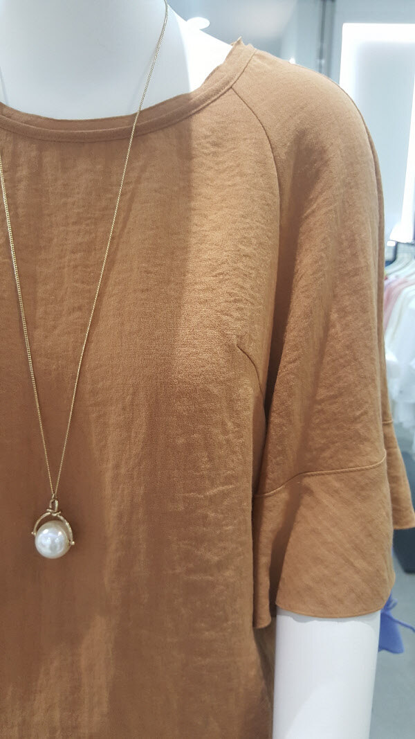 기본 기장의 오버핏 블라우스예요~루즈하게 나왔으나 어깨선이 라글란이라서 슬림하게 빠집니다~목걸이랑 세트상품이니 같이 착용하셔서 이뿌게 입으세요~